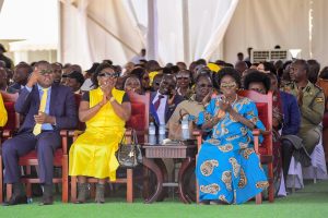 Nankabirwa (C) in the company of her junior ministers and other cabinet members